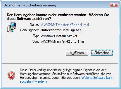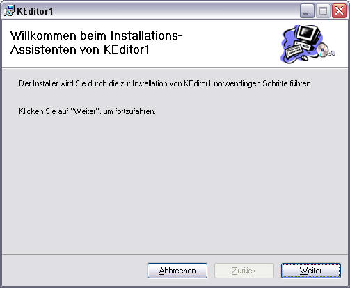 Nach dem Download starten Sie in Ihrem Downloadverzeichnis das Programm keditor1.msi mit einem Doppelklick.