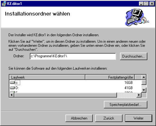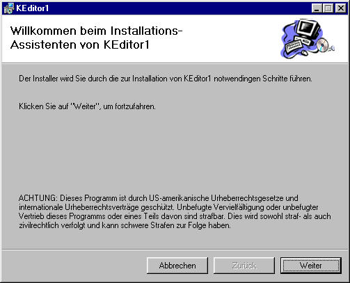 Nach dem Download starten Sie in Ihrem Downloadverzeichnis das Programm keditor1.msi mit einem Doppelklick.