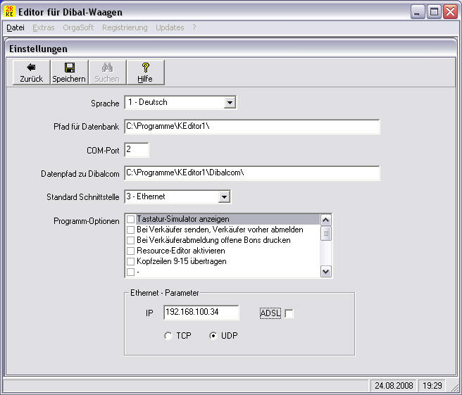 Das Programm startet und befinden sich in dem Programmteil Einstellungen